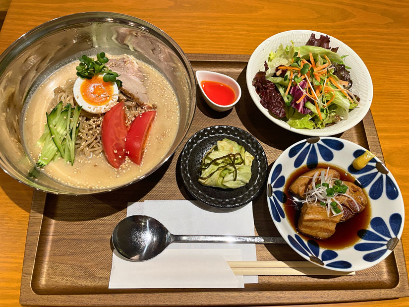 ランチではオリジナル麺の「冷麺」と「角煮」の定食を