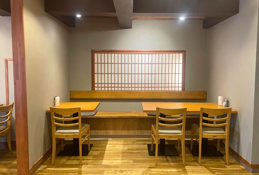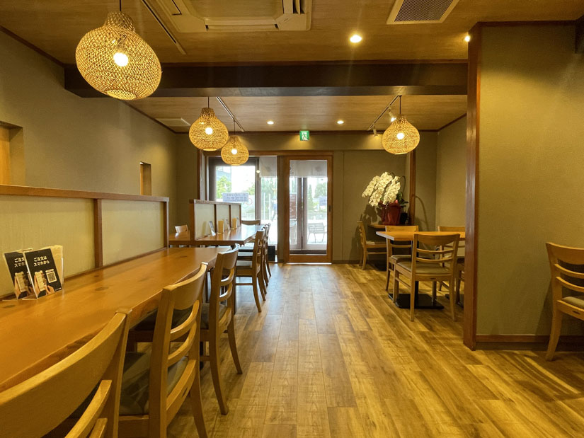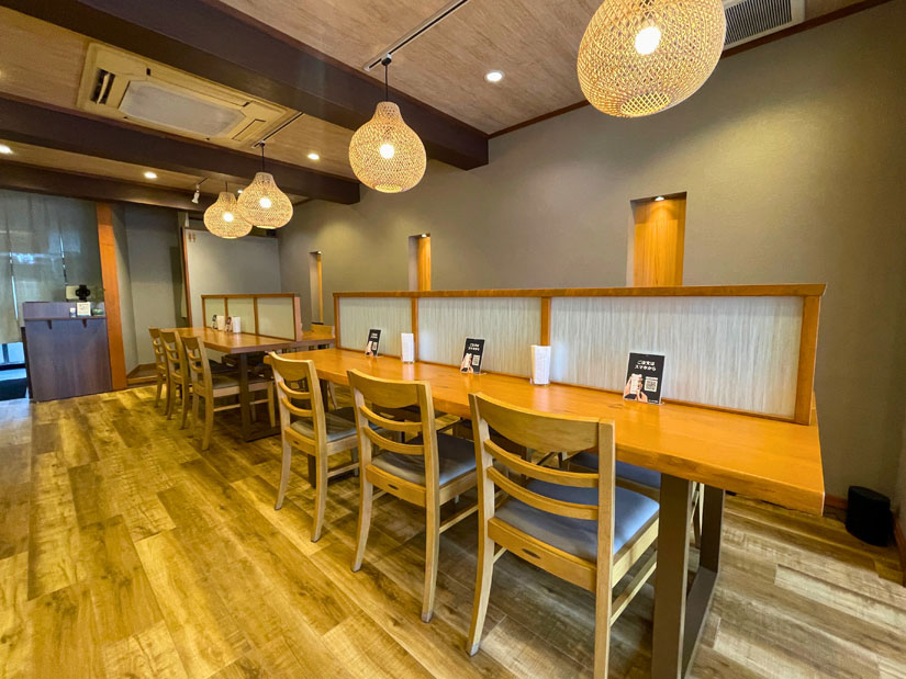 店内はカウンター席とテーブル席を合わせて24席。木目を生かした落ち着いた内装で、ゆったりと食事を楽しめる空間になっています。