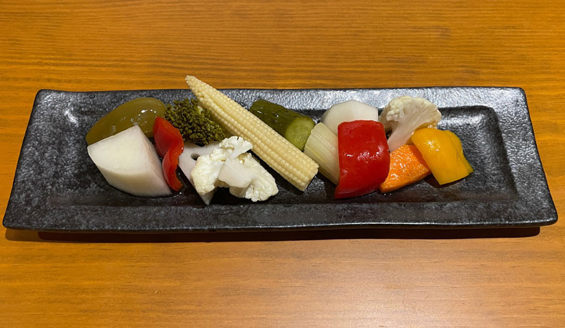 ディナータイムは「角煮」をはじめ、「ピクルス」(600円)や「チョレギサラダ」などのおつまみメニューも用意。お酒は「生ビール」(700円)や「レモンサワー」(600円)などの定番のほか、「夜明け前」や「明鏡止水」など、長野県の地酒もそろえています。