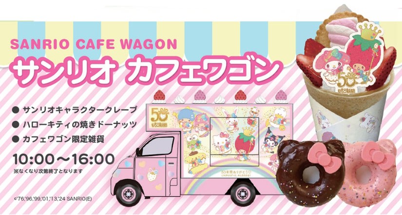 『SANRIO CAFE WAGON』(サンリオ カフェワゴン)が登場し、「サンリオキャラクタークレープ」や「ハローキティの焼きドーナッツ」、カフェワゴン限定雑貨を販売。商品はなくなり次第終了。