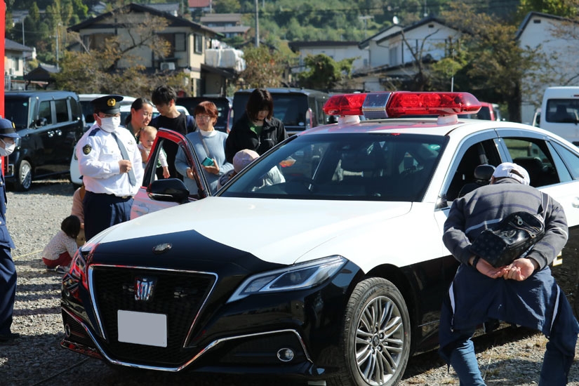 子どもたちが実際の働く車を見て触れられる体験コーナー。警察車両や消防車、自衛隊車両などが登場し、記念撮影も可能。