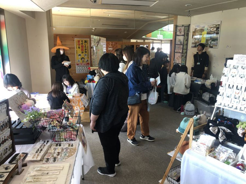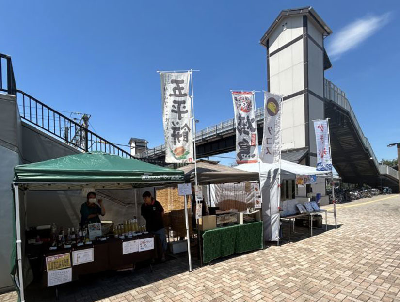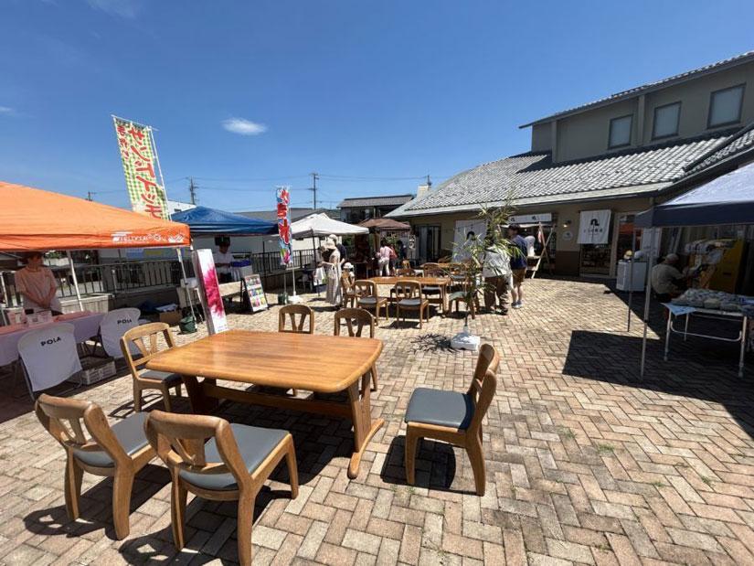 マルシェ会場は入場無料。2階テラスエリア(屋外)と館内通路にフードやクラフトなどのお店が並ぶほか、駐車場入口付近にはキッチンカーも出店します。