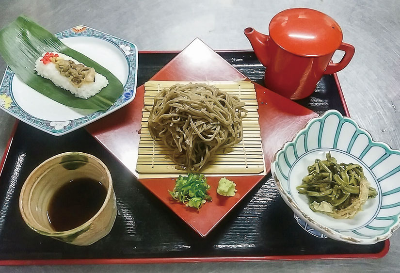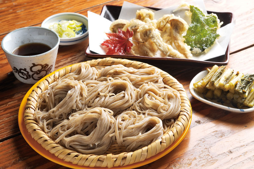 「そば本来の風味を大切にしている」と話す店主が打つそばは、独特の歯ごたえで風味も格別。ヤマゴボウの甘さがほんのりと感じられる一品だ。