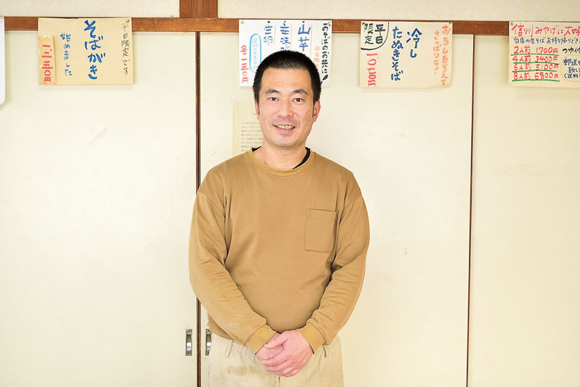 飯山市内の割烹店で板前をやっていたときに、富倉地区出身の親方が打つそばに魅せられ弟子入り。2009年に支店をオープンさせ、親方亡き後も郷土の味を守り続けているのが、店主の小野さん。