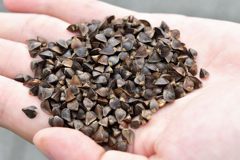赤い実は次第に茶色くなっていきます。玄蕎麦は青木村内の製粉所で石臼挽きされ、風味の良い蕎麦粉が完成します。