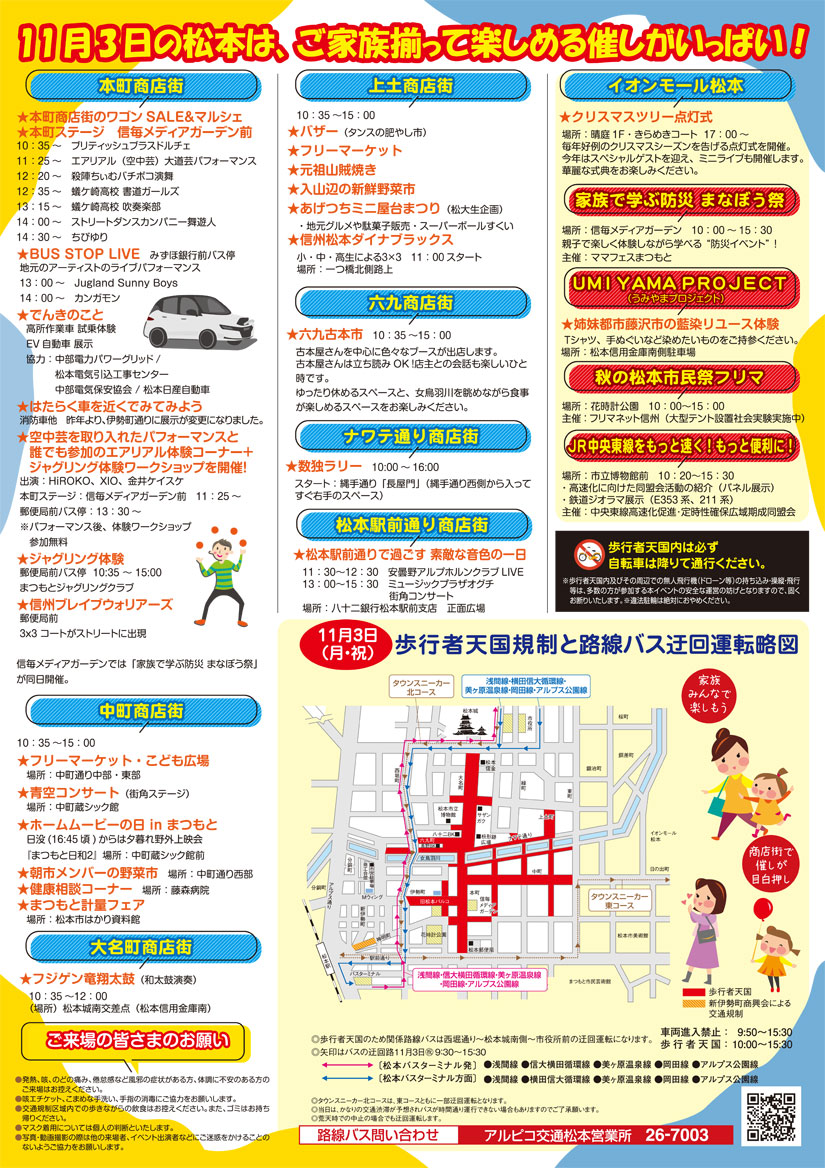 当日は、中心市街地で行われるイベントのほか、近隣の商店街、イオンモール松本などでも行われます。