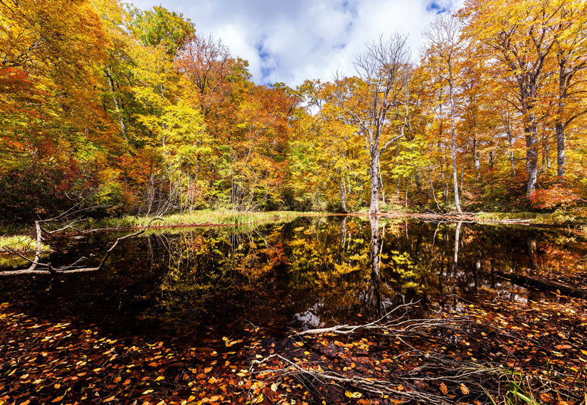 「奧裾花渓谷」を抜けた先にある「奧裾花自然園」。新潟県との県境に近い裾花川の源流域に位置し、「水源の森百選」にも選ばれた豊かな自然が広がるエリア。秋には、一帯に広がる紅葉を楽しめます。「奧裾花自然園」は、2025年11月3日(月・祝)までの開園。