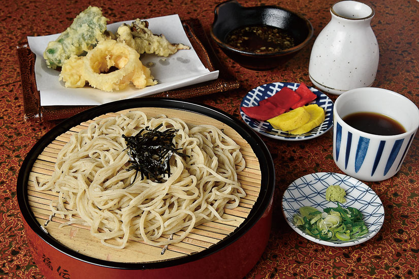 季節の野菜とエビの天ぷらが付く「天ざるそば(二枚)」1,900円