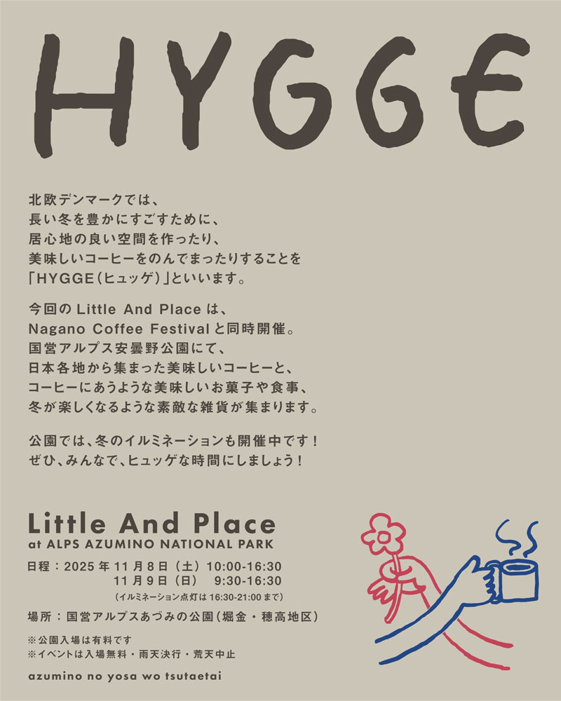 長野県安曇野市の「国営アルプスあづみの公園(堀金・穂高)」で、松本地域の人気マルシェイベント『Little And place(リトルアンドプレイス)』が、2025年11月8日(土)・9日(日)に行われます。