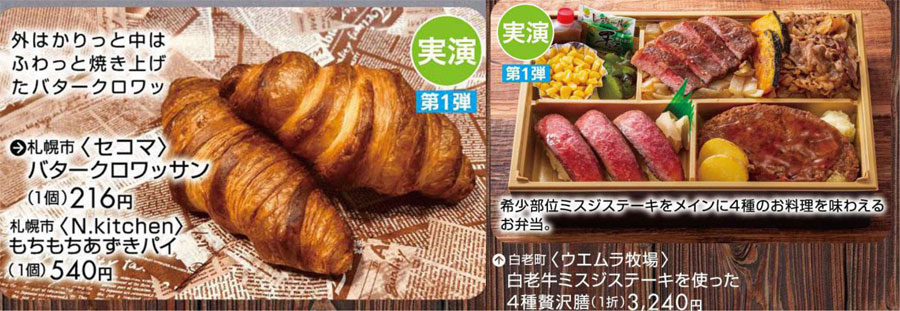 さらに、釧路のソウルフード〈ジョイパックチキン〉や〈セコマ〉のクロワッサンなどの実演販売をはじめ、〈ウエムラ牧場〉白老牛の弁当、カニやエビなどの海鮮弁当、めんたいチーズコロッケなど話題のフードが大集合します。