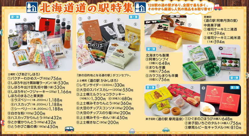 そして、北海道128の道の駅の中から人気商品を集めた『北海道道の駅 特集』も!日本酒ケーキ・まりも羊羹・ラーメンなど厳選商品が並ぶのでお見逃し無く!