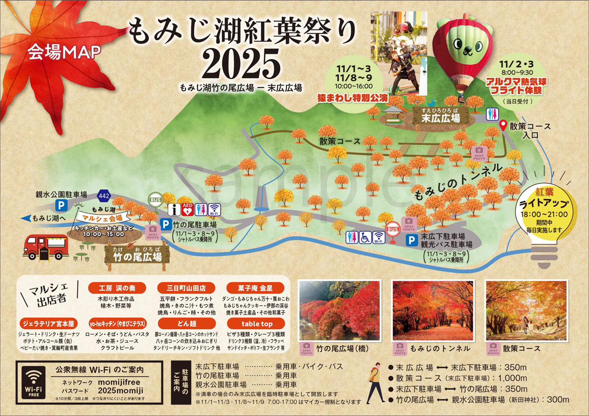 2025年11月1日(土)、11月2日(日)、11月3日(月・祝)、11月8日(土)、11月9日(日)はマイカー規制日のためマイカー利用の方は、駐車場の予約が必要になります。