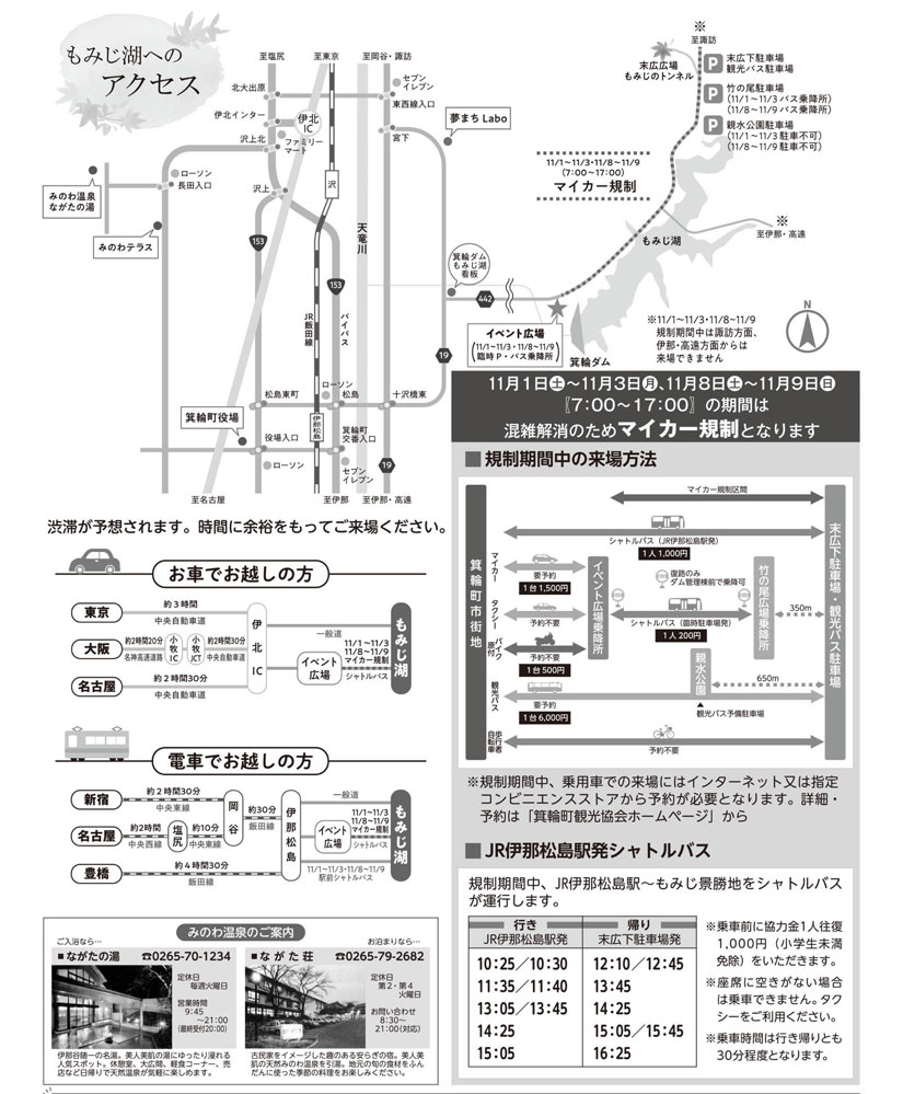 ※規制期間中は諏訪方面、伊那方面からの来場はできません。