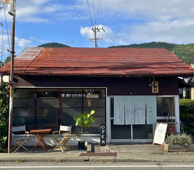 長野県茅野市にある築80年以上の古民家を改装したカフェレストラン「AlgAe(アルジー)」。八ヶ岳産の旬の野菜や果物を使用した冷菓や天然氷のかき氷も楽しめます。と、ナチュラルスパイス料理が楽しめるお店です。