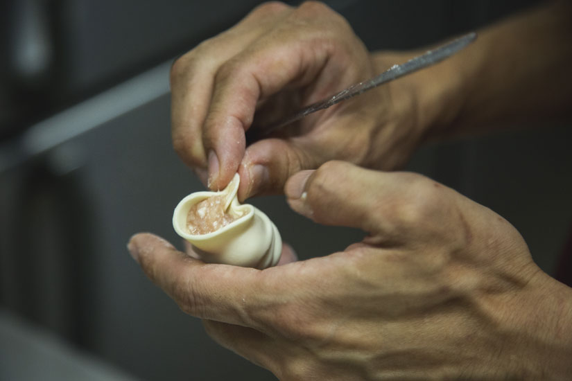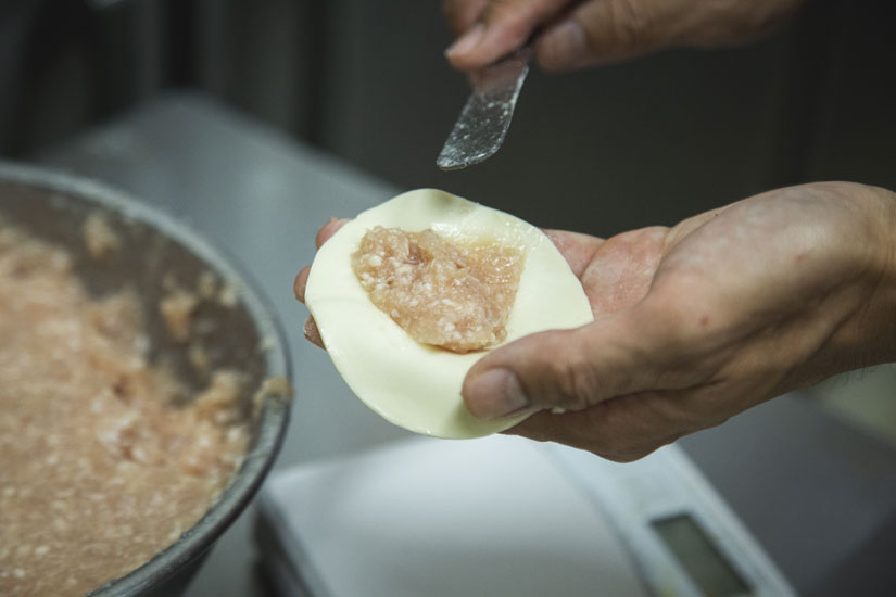 小籠包をはじめ、焼売や餃子などの包子(ぱおず)は、すべて星野さんが一つひとつ手作り。華麗な手さばきで次々と形成していく様子は見事です。スープや薄皮、包む具材とのバランスを考え、それぞれの包子に合わせて仕込みを行うなど、手間を惜しまないこだわりが光ります。