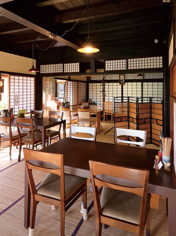 お店は上田城跡公園近く、 明治の豪商・丸山家の古民家をリノベーションした店舗。カウンター席やテーブル席を用意。