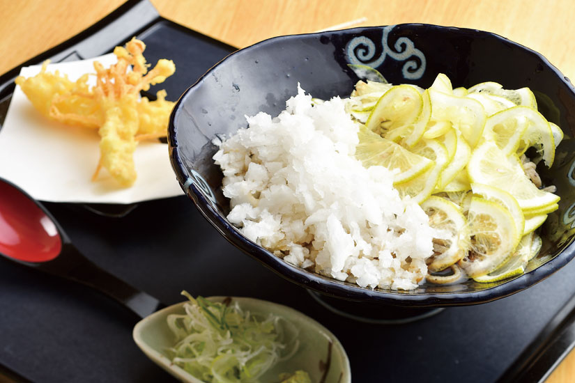 夏季限定の「ぶっかけレモンそば」1,600円。国産レモンを1/3個使用。
