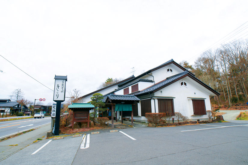軽井沢追分に佇む「そば処 きこり」。御代田町にある系列店「soba香りや 本店」に製粉・製麺所を併設しています。