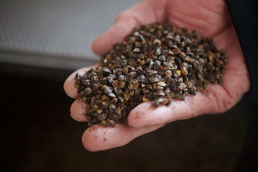 玄蕎麦は軽井沢や御代田など、豊かな自然の中で育った厳選品を使用。製粉時は二八そばと田舎そばで、ふるい目の大きさを変えます。