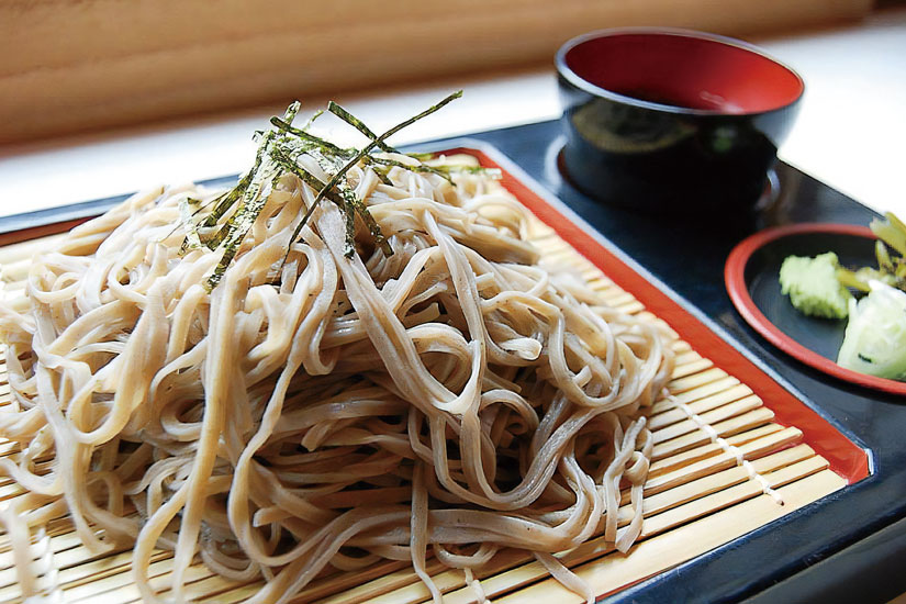 手打ちそばは、つなぎに奥信濃地方で使われる「オヤマボクチ」と、新潟県で使用する「ふのり」の両方を使った独特の逸品。地元産のそば粉を使い、強いコシと豊かな香り、ツルっとしたのど越しが自慢です。