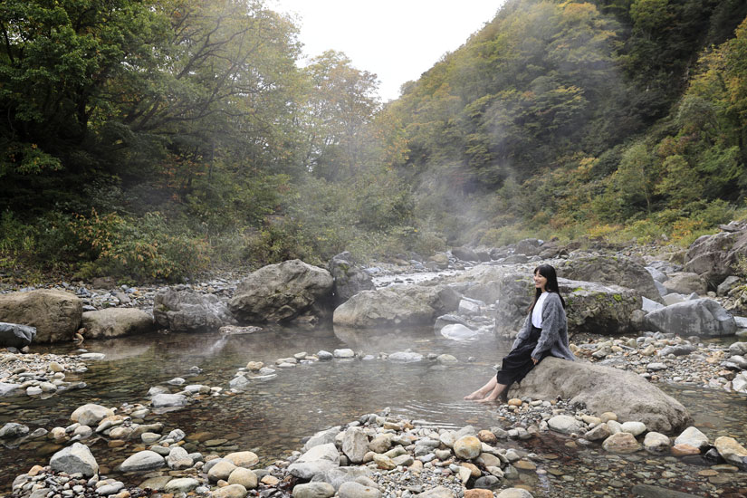 約56℃の源泉が川原に湧き出る!絶景とともに楽しむ温泉