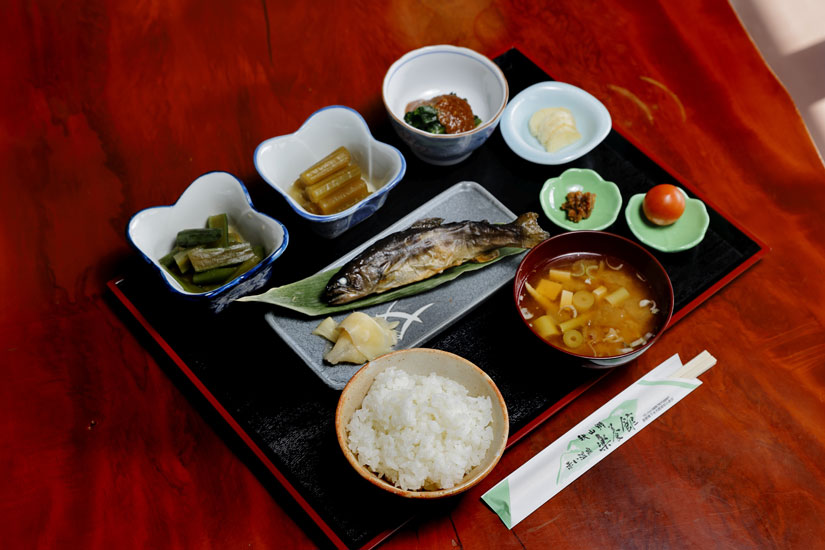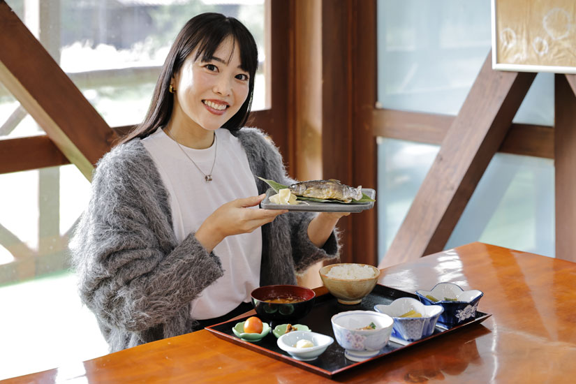 地元の清流が育んだ岩魚と山菜が楽しめる「岩魚定食」(1,500円)。