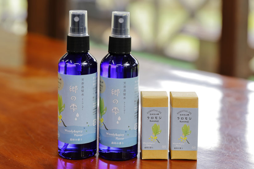 またジェラートでも使用している「クロモジ」は、防虫、消臭のほかリラックス効果もあり、「クロモジ芳香蒸留水」(1,000円)や「クロモジ和精油」(2,400円)として販売中。