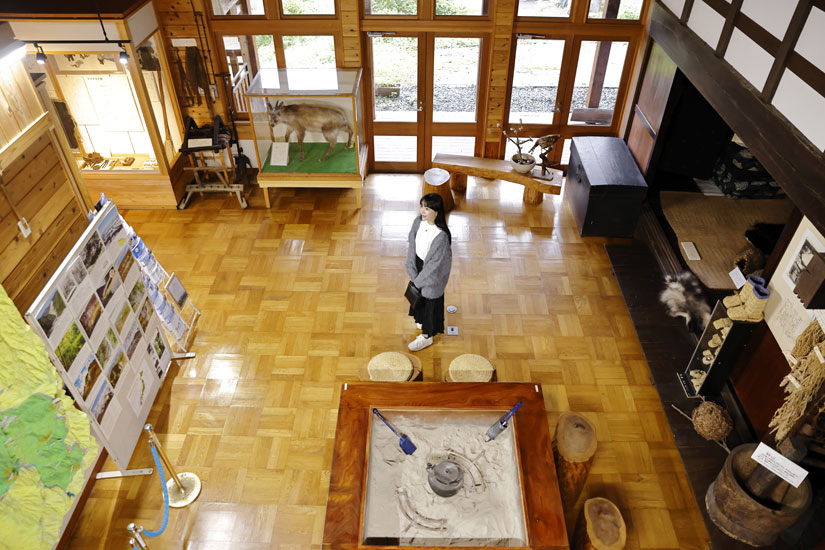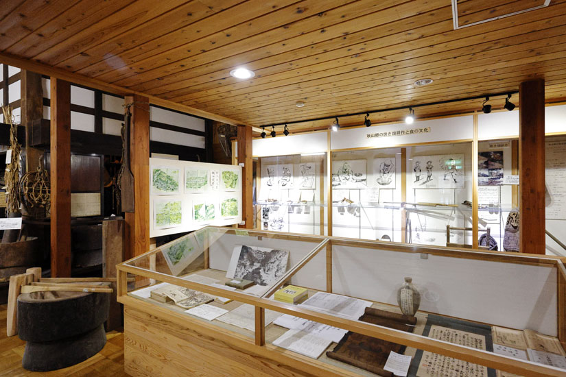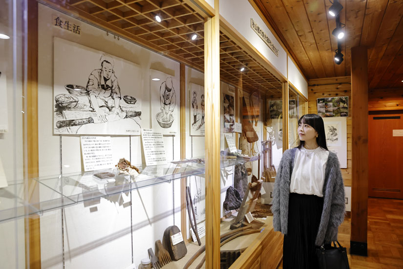 ここには、焼畑農業やマタギの民具、昔の家屋の再現コーナーなど、地域の古くからの生活様式や風俗習慣が分かる資料を展示しています。