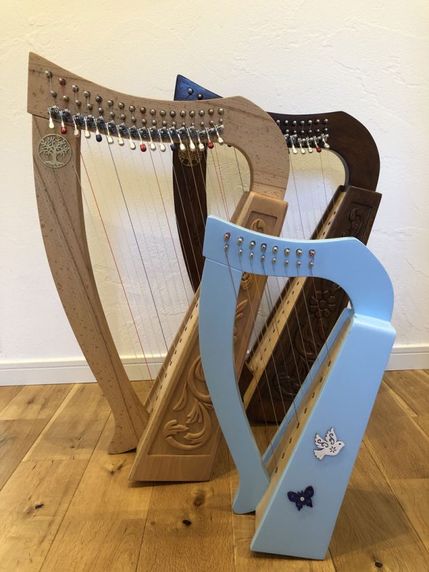 「ミニハープは膝の上にのるサイズで、小さいので持ち歩きもでき、音も大きくないので住宅街やお隣が近くても大丈夫です。コンサート当日は今流行っているミニハープの展示もいますので、この機会にぜひ実物をご覧になってみてくださいね!」
