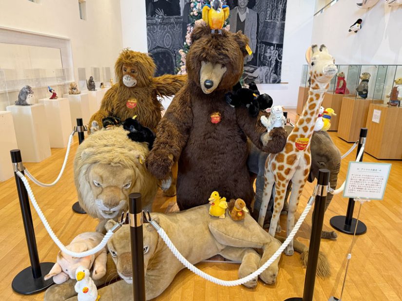 「しあわせのぬいぐるみパーク展」は、そんな「ぬい活」ファンにぴったりのイベント。会場にはぬいぐるみの本場・ドイツから来た希少なぬいぐるみや、日本のぬいぐるみ作家による須坂をテーマに制作した作品など、さまざまなぬいぐるみが展示されており、まさにぬいぐるみのテーマパークのような空間が広がっています。
