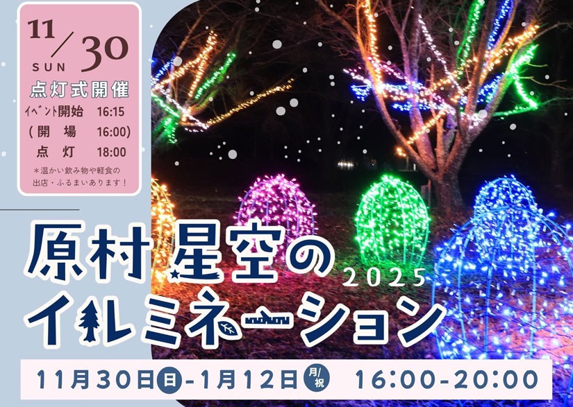 2025年11月30日(日)から2026年1月12日(月・祝)まで、長野県諏訪郡原村で『原村 星空のイルミネーション2025』が開催。例年ペンション街で開催されていましたが、今年は「八ヶ岳自然文化園」が会場。コンセプトは”標高1,300mの高原で楽しむ、星空とイルミネーションの幻想空間”。地元の小・中・高校生がプログラミングした音と光のページェントを、澄んだ冬の夜空に広がる満天の星と同時に楽しめます。