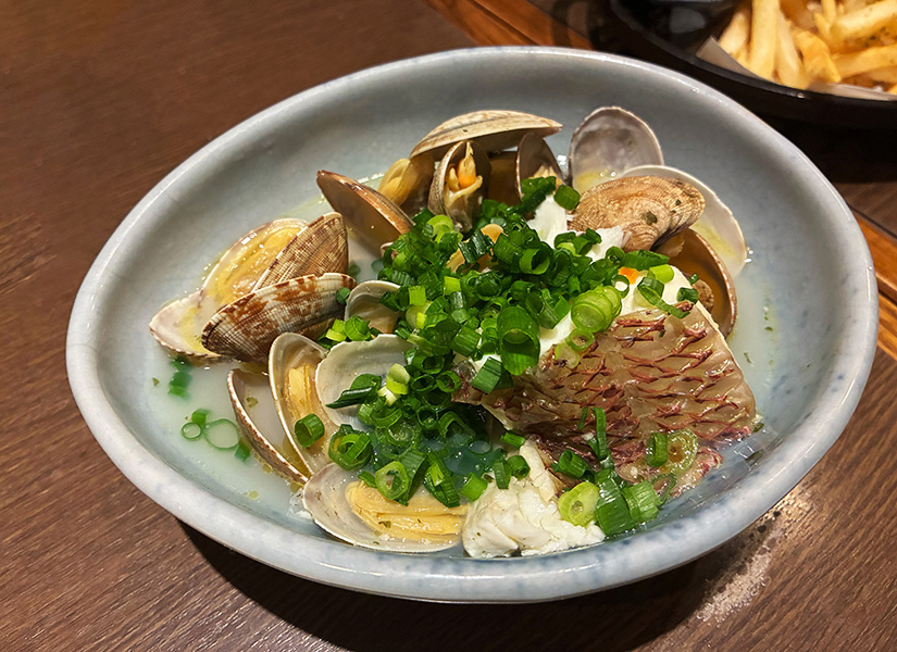 まずは軽めの一皿からスタート。「ウニポテトサラダ」(790円)はウニソースの独特の磯の香りとクリーミーさが、ポテトサラダに絡み、まろやかで上品な味わいに。また、「アサリと白身のバター蒸し」(890円)は、アサリの出汁が白身魚にしっかり染み込み、バターの香りがふわっと重なり、食欲を引き立てます。