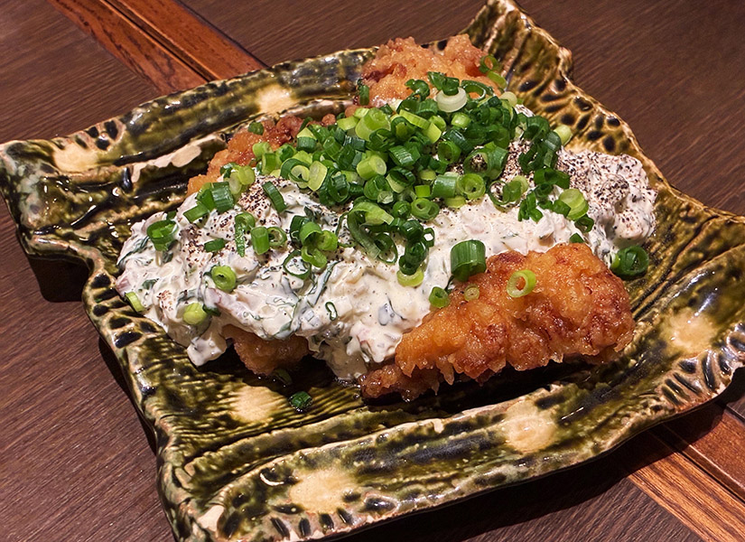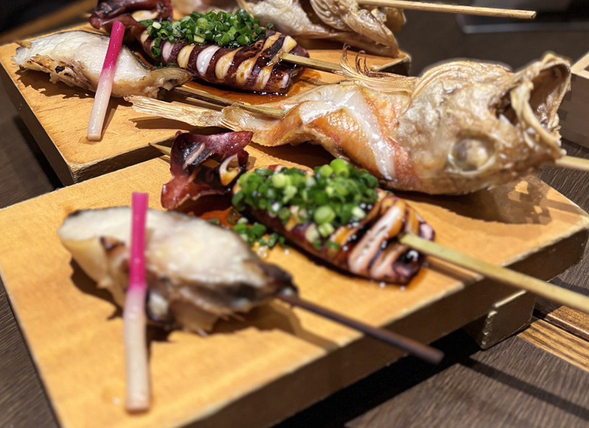 他にも、「自家製タルタル!チキン南蛮」(780円)を注文。南蛮の甘酢ダレとタルタルの酸味とコクが絶妙に重なる一品。また、「魚串盛り合わせ3点盛」(1,490円)は、銀鱈の粕漬、ブリのタレ焼き、カサゴの塩串の豪華な3点セット。この時はブリが品切れで、代わりにイカをいただきましたが、これがまた絶妙。仲間と分け合いながら楽しむのもおすすめ!