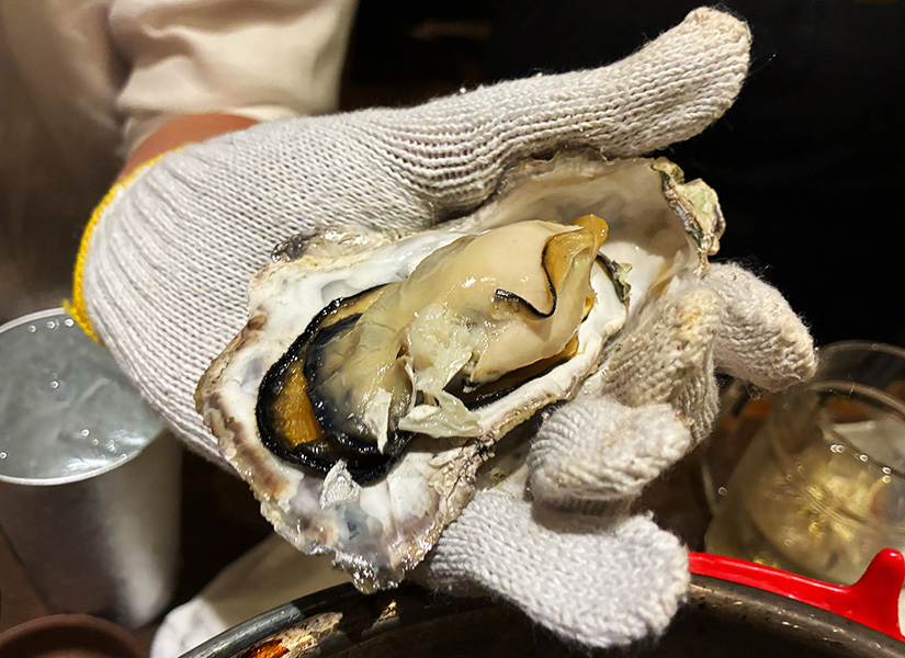 カキも一押し!ということで「ちんちろバケツカキ」(1,111円)も注文。2つのサイコロを振って個数を決める、ちょっとしたギャンブル感も魅力です。蒸し牡蠣の湯気と磯の香りに包まれながら、パカっと開ける瞬間のサプライズ感が、さらに味わいを引き立てます。