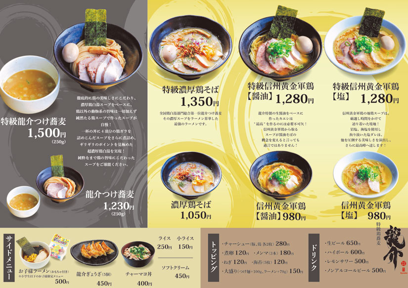 龍介が誇る看板メニュー。かつてないほどの旨味を実現した、龍介ならではの一杯。創業以来のこだわりが詰まった逸品です。