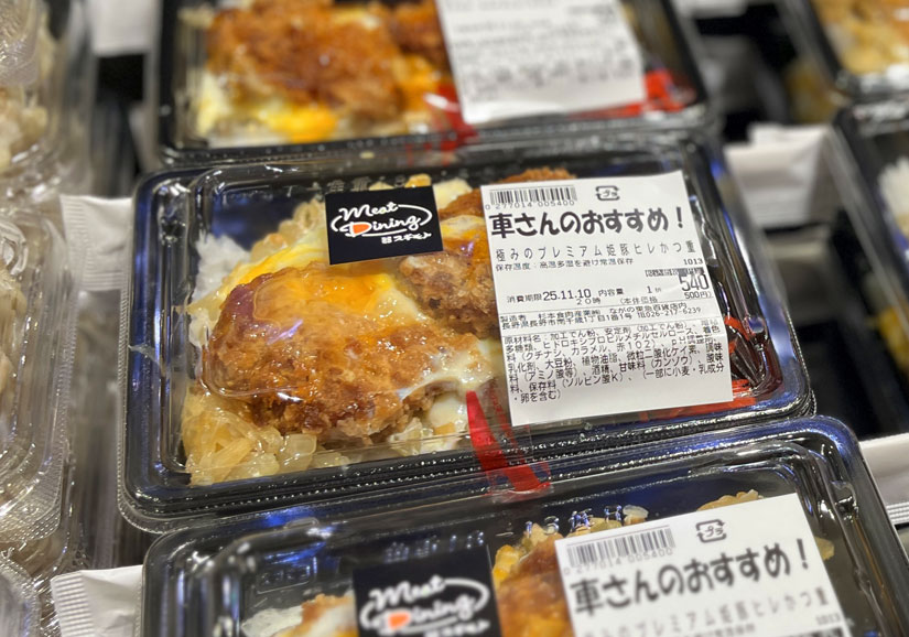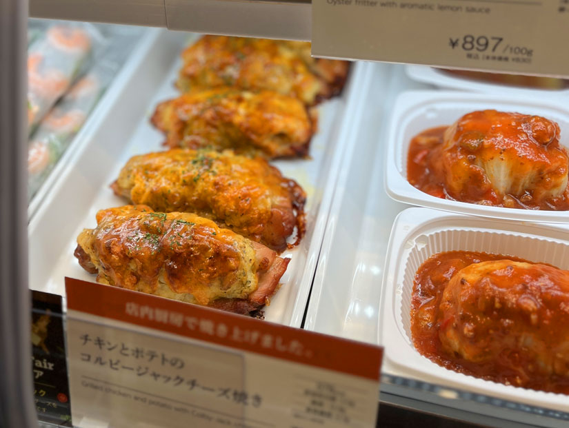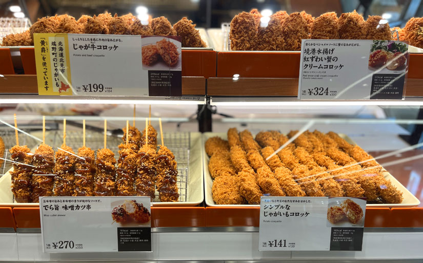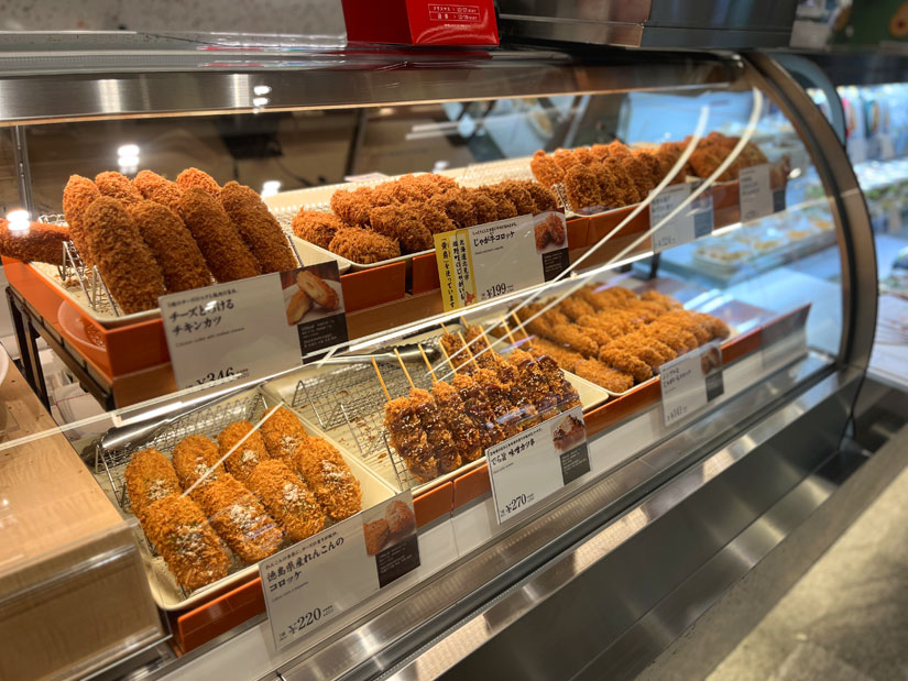 ほかにも取材日は、「姫豚の厚切りロースカツ」540円、「姫豚のひとくちヒレカツ」194円、「かぼちゃコロッケ」194円、「カニクリームコロッケ」270円、「白身魚フライ」130円、「アジフライ」216円、「広島県産カキフライ」250円などの揚げ物と、国産若鶏のチキンステーキなどが並んでいました。