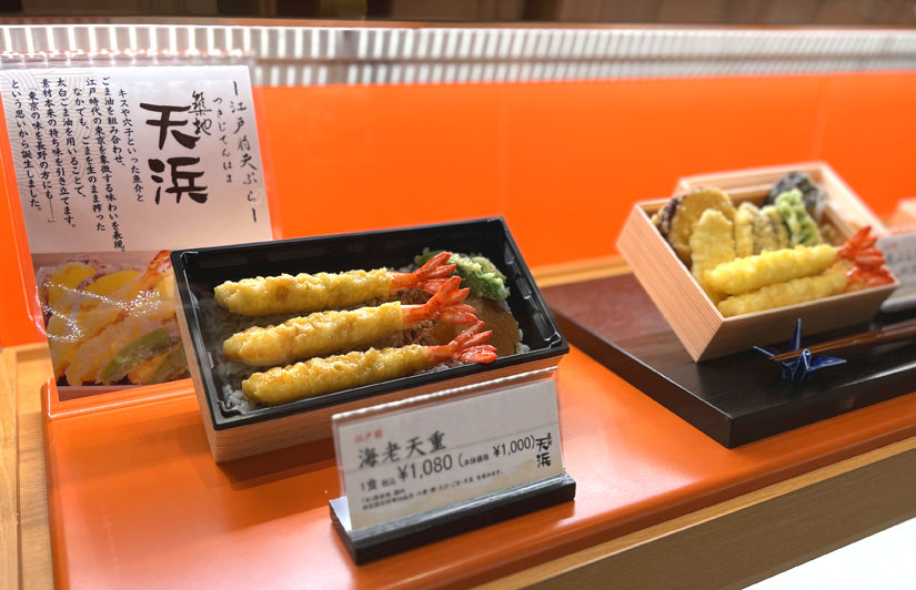 江戸前天ぷら専門店「築地天浜」がオープン。ごま油で揚げた天ぷらや、海老天重を販売。「味の浜藤」では「築地魚弁」の焼き魚やお弁当がそろいます。