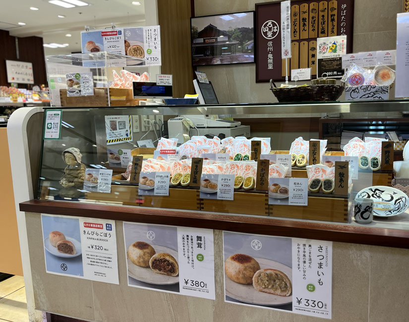 「いろは堂」では「ながの東急百貨店」限定「きんぴらごぼう」のおやきも販売。