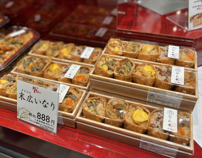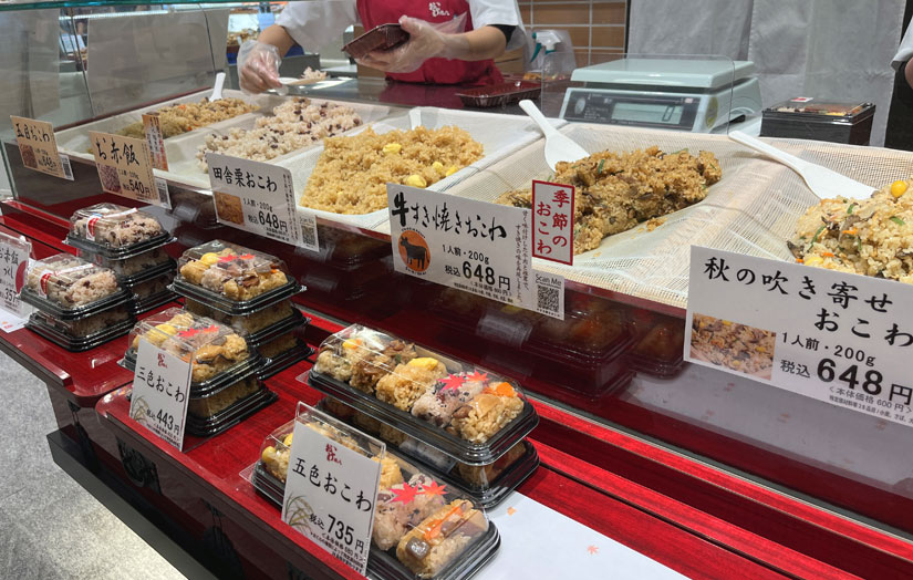 売場併設の調理場で炊き上げる、おこわ専門店。五目おこわ・お赤飯などの定番をはじめ、季節のおこわも味わえます。