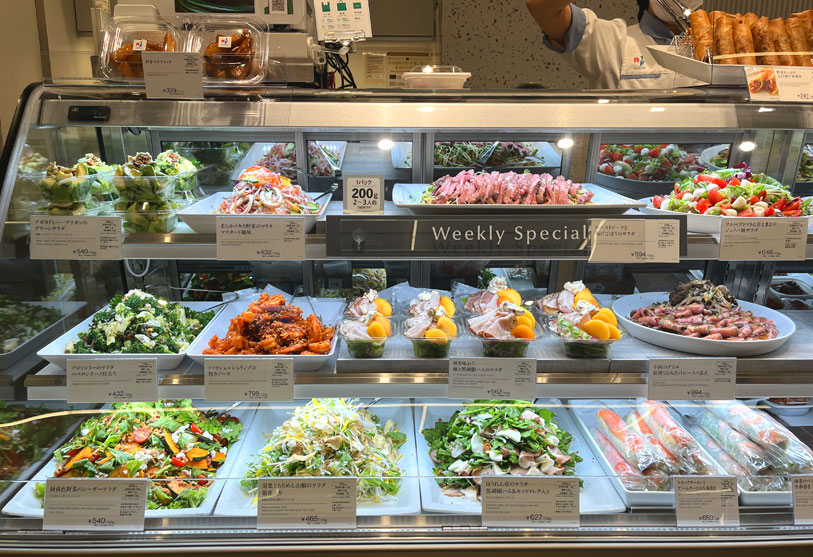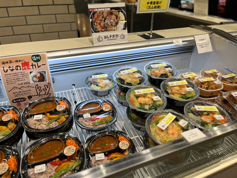 人気のお惣菜店「RF1(アール・エフ・ワン)」の多彩なサラダとお肉などの料理や、老舗精肉店「スギモト」の松阪牛の弁当やコロッケ、「中島水産」の寿司、「築地天浜」のてんぷらと海老天重をはじめ、やきとり、おこわ、とんかつなど各専門店のお惣菜とお弁当が大充実!さらに、長野市の人気飲食店のお惣菜とお弁当を曜日代わりで販売する「おしナガ(き)」も新設され、ランチタイムや仕事帰りに立ち寄りたい魅力がいっぱいです♪