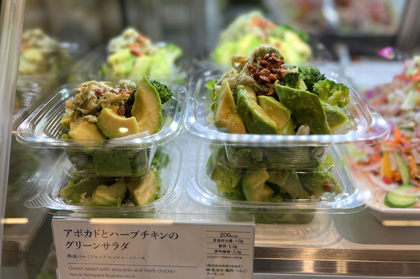 「アボカドとハーブチキンのグリーンサラダ」540円/100g。熟成パルミジャーノソース付き。