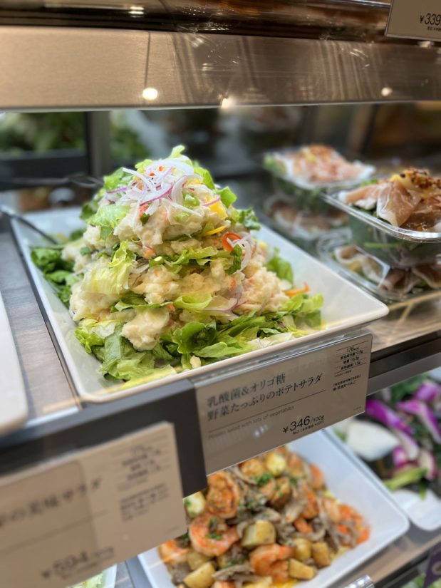 右上「乳酸菌&オリゴ糖 野菜たっぷりのポテトサラダ」346円/100g。