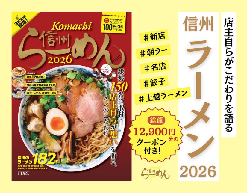 3年ぶりの発行となる今回の「信州らーめん」は、「ラーメンの世界をもっと広げてほしい」「信州ラーメンをさらに盛り上げたい」—— そんな熱い想いを込めて、長野Komachi編集部が制作しました。
