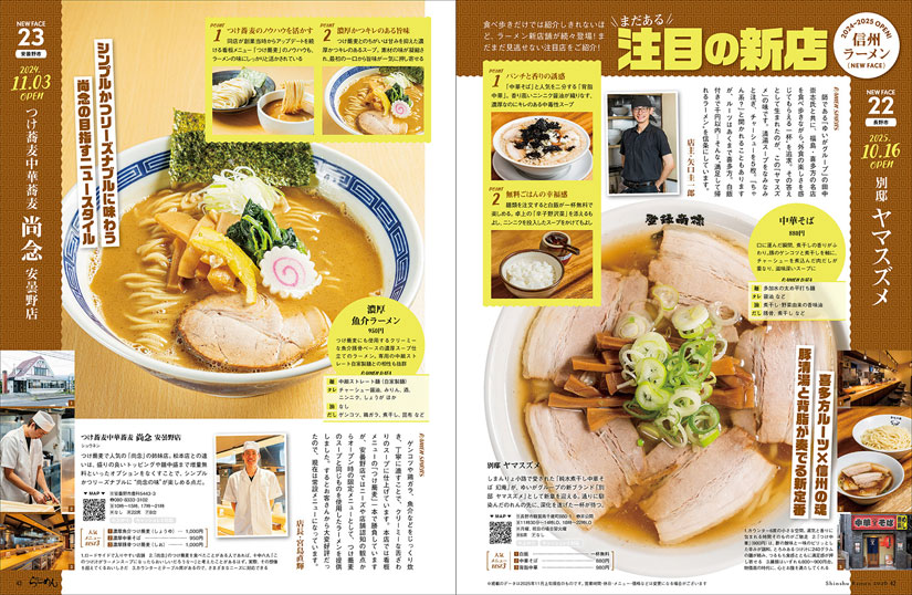 2025年は、毎年9月の恒例となっていた「長野Komachi」のラーメン特集を刊行しなかったこともあり、例年特集を楽しみにしてくださっていた皆さまへも最新のラーメン情報をお届けできること、大変うれしく思っています。ぜひ手にとっていただきたいので、注目のコンテンツをご紹介します!