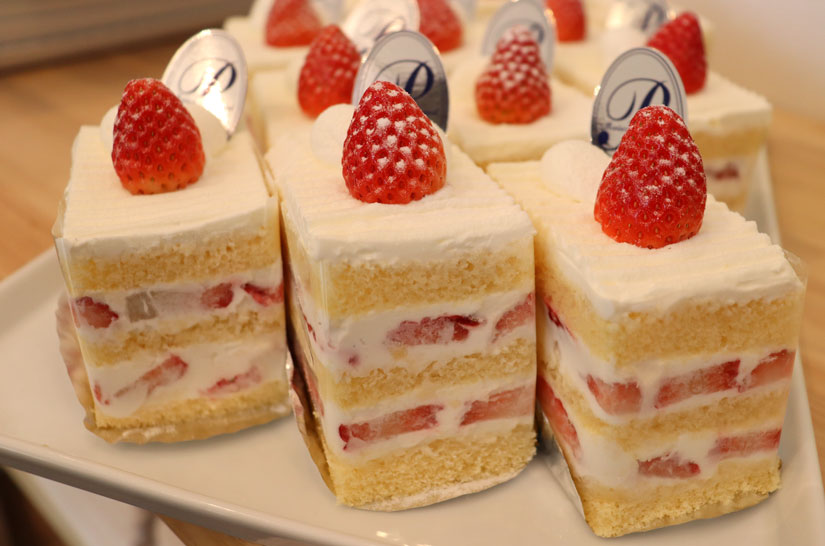 「ミニシフォン」(380円)は、仕上げに北海道産の生クリームを詰めて、上に諏訪地域で生産される「みかりのいちご」をのせて完成です。