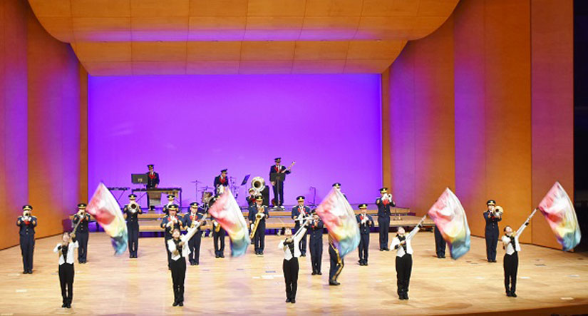 警察音楽隊ならではの見どころといえば、ステージドリル!楽器を演奏しながらフォーメーションを作るパフォーマンスと、カラーガード隊員の華麗なフラッグ演技は必見です。