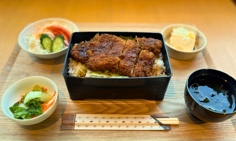 高校生当時から小森さんのお気に入りだったメニュー「ソースかつ重セット」(普通1280円、大盛1380円)も登場。サラダ・スープ・小鉢2つがつく定食スタイル。画像は普通盛り。