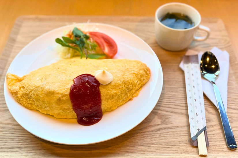 オムレツは昔と変わらず2Lの卵を2個使用。長野市若穂の契約農家から仕入れるお米「風さやか」にたっぷりのケチャップを使ったチキンライスは、卵との相性ピッタリの濃いめの味付け。画像はMサイズで、総量700gと思わず笑みがこぼれるほどの大きさ。Sサイズでも400gと十分ボリュームがありますよ。シンプルにしてベストな味わいを楽しんで。