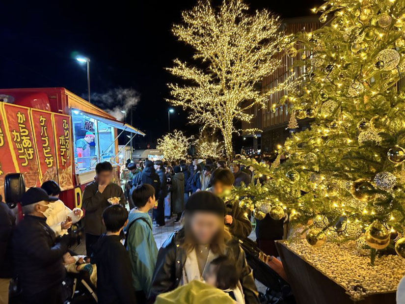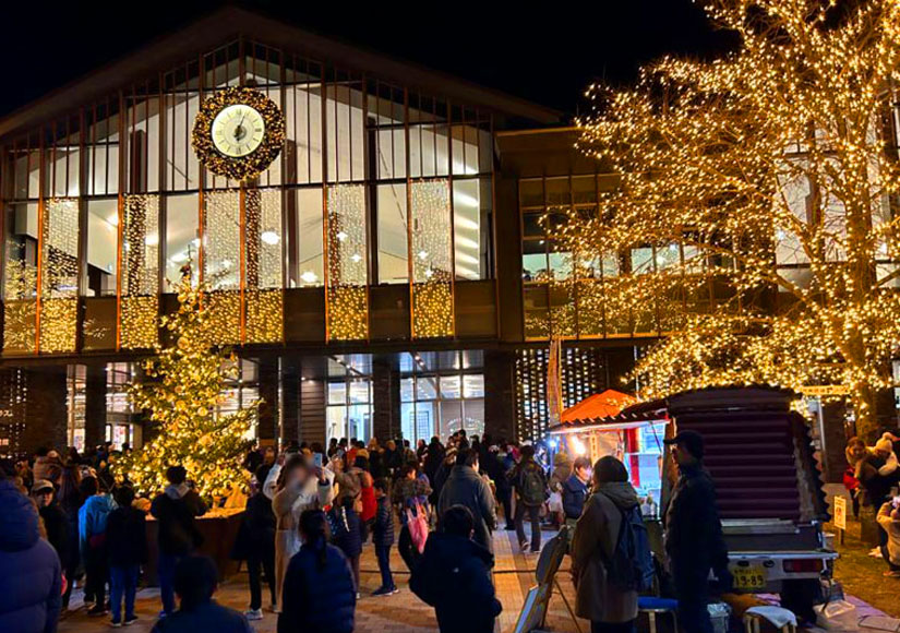 そして、午後6時(予定)に花火とともに駅前が点灯。マルシェ会場がイルミネーションで煌めき、クリスマスマーケットのような雰囲気を楽しめます。
