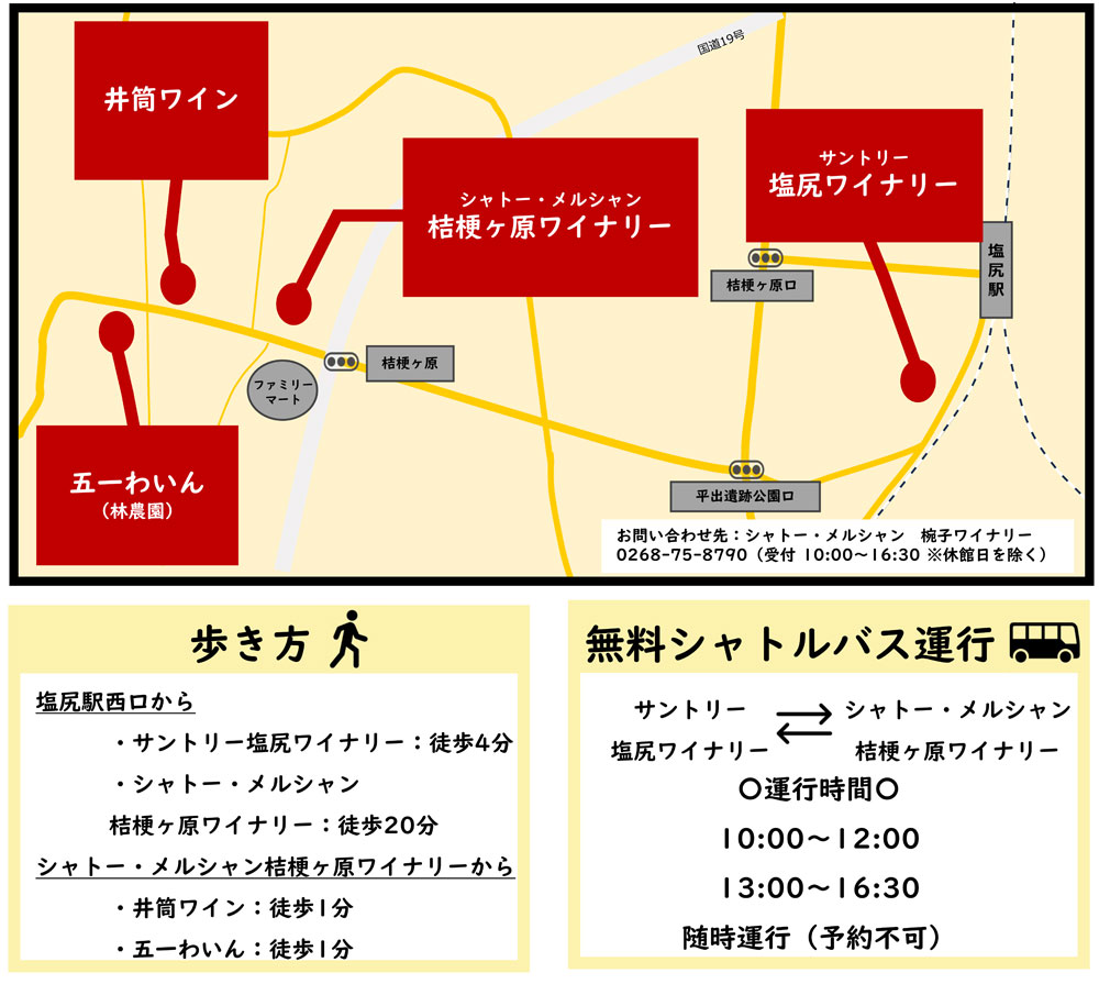 区間:「サントリー塩尻ワイナリー」⇄「シャトー・メルシャン 桔梗ヶ原ワイナリー」